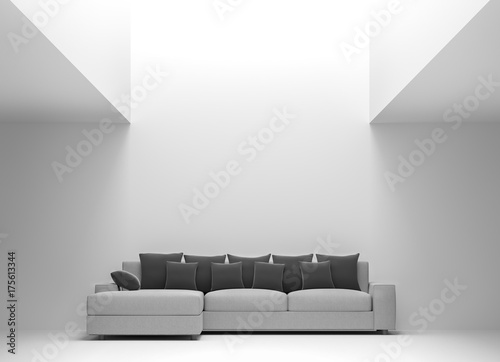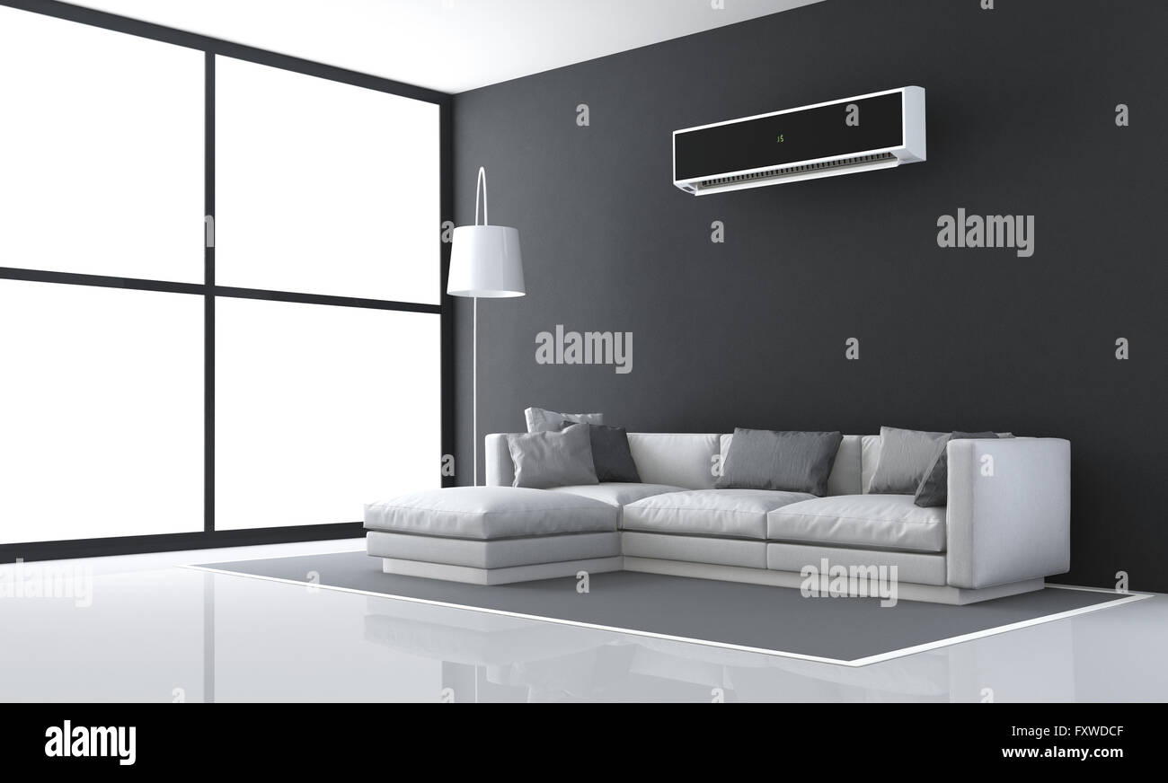 Minimalist Black And White Living Room With Sofa And Air
