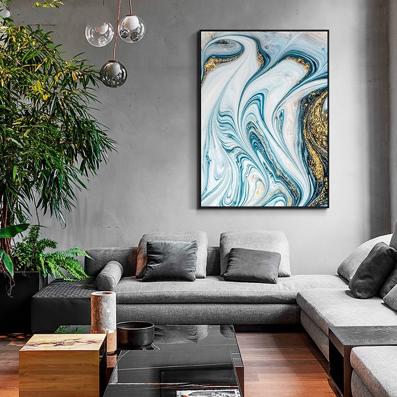 Minimalist Wall Art Abstract Blue Marble Canvas Painting Flowing