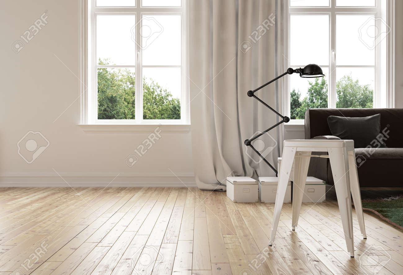 Modern Minimalist Interior Living Room Wood Stock Illustration