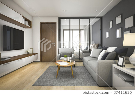 Modern Minimal Wood Living Room Bedroom Apartment Stock