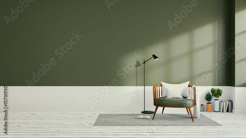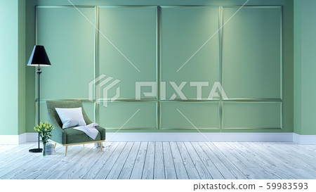 Modern Vintage Living Room With Green Wall 3d Rendering Image