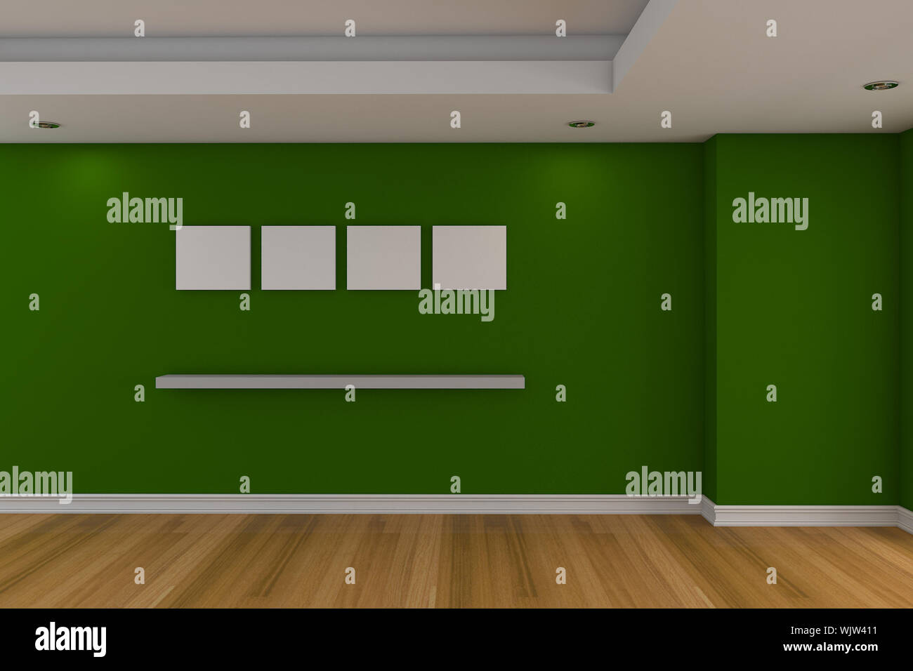 Modern Minimalist Empty Livingroom With Green Wall Wood Floor