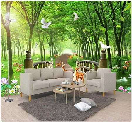 3d Mural Wallpaper Beautiful Minimalist Leisure Green Tree Forest