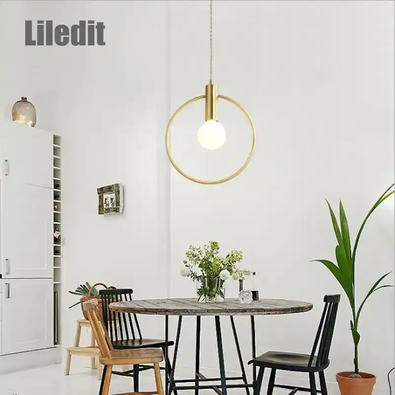 Modern Led Metal Hanging Lampring Iron Round Pendant Light Home