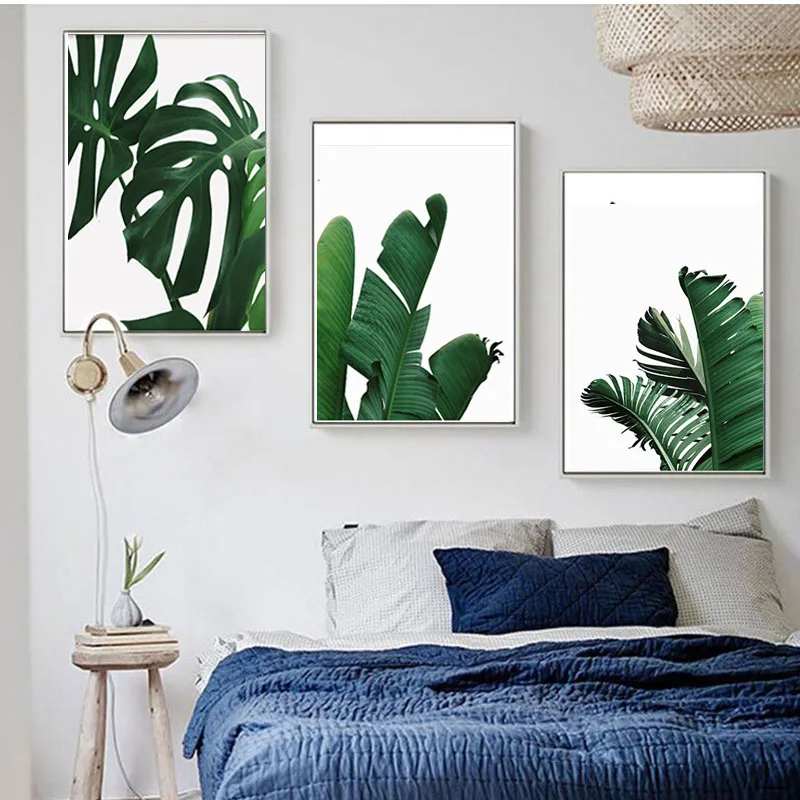 Nordic Canvas Painting Green Leaf Minimalist Tropical Plant Palm