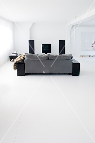 Minimalist Grey And White Modern Living Room Interior With A Black