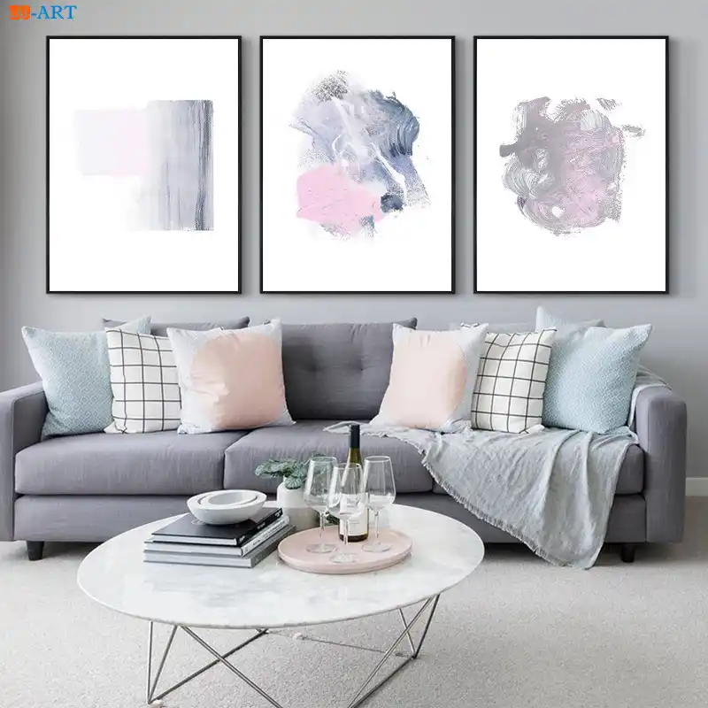 Abstract Poster Wall Art Pink Gray Art Print Minimalist Canvas