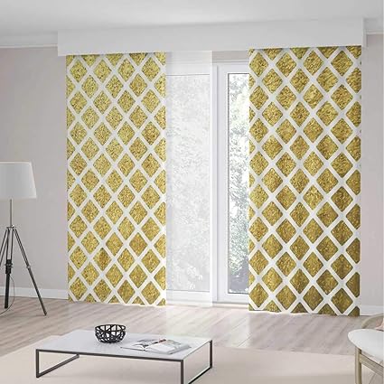 Iprint Gold White Room Decor Curtains Rhombus Minimalist Modern